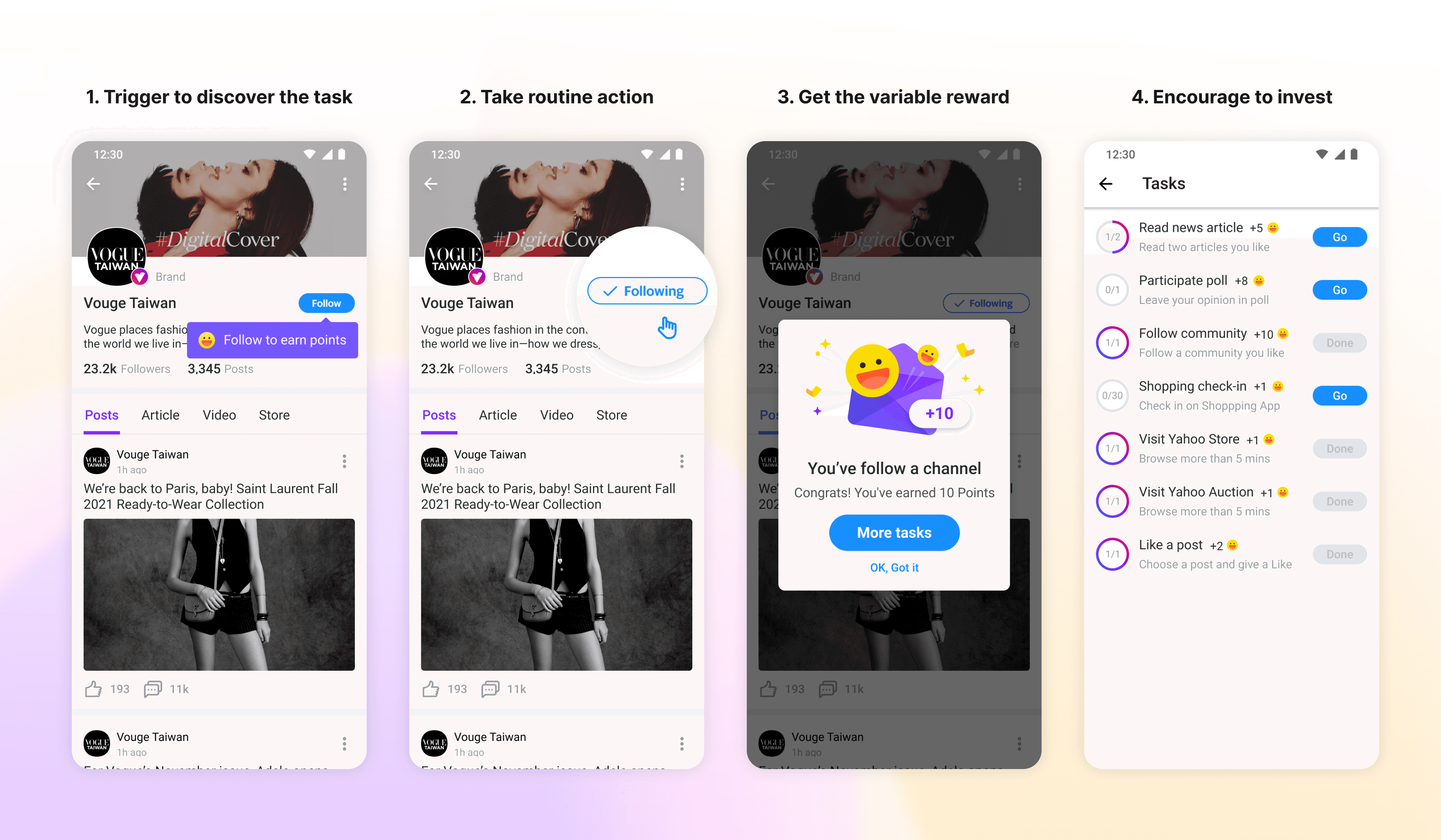 Yahoo Loyalty Rewards Program demonstrated the success of a task-reward system in driving user engagement. Building on it, we expanded the program across multiple Yahoo services to boost cross-platform traffic.